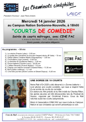 Ceux du Rail & CINE FAC sont heureux de vous inviter à une séance de courts-métrages intitulée COURTS DE COMEDIES, suivie d’une rencontre avec les équipes des films.