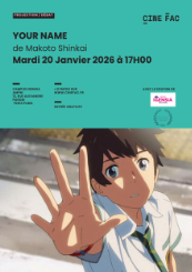 L’équipe du Bureau des Arts & de la culture (BDAC) / pôle arts & culture et CINE FAC vous propose de voir ou revoir le film d’animation japonais Your Name de Makoto Shinkai.